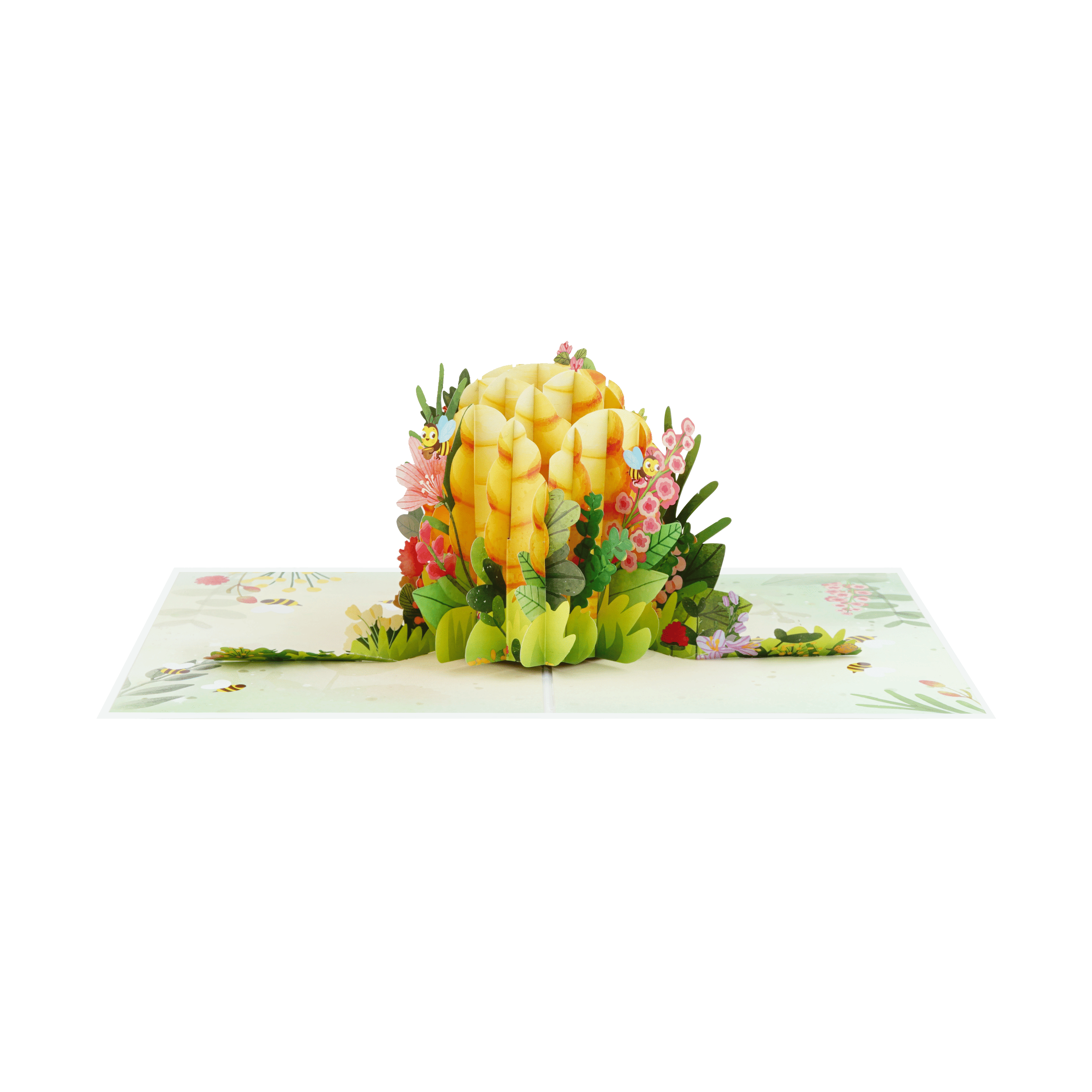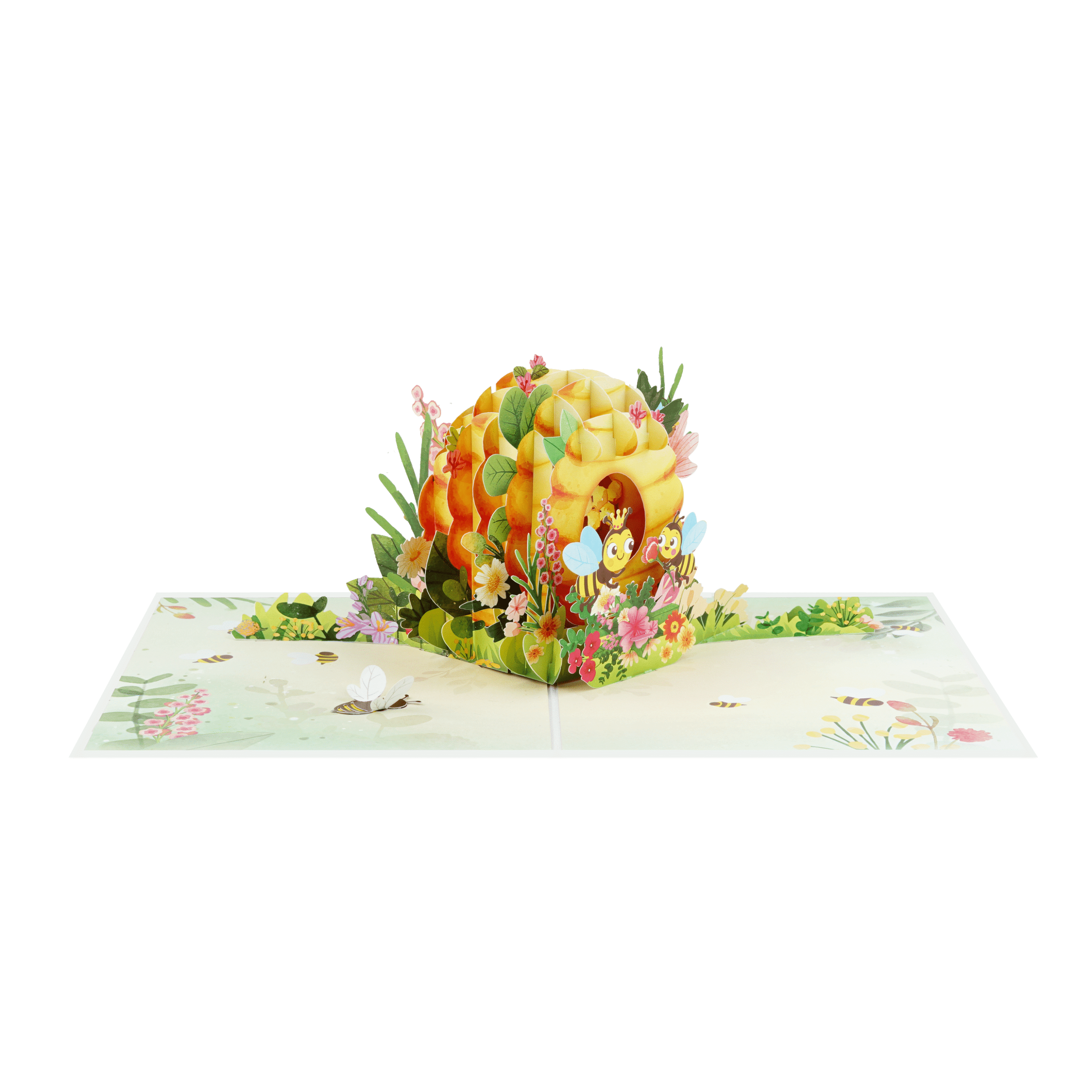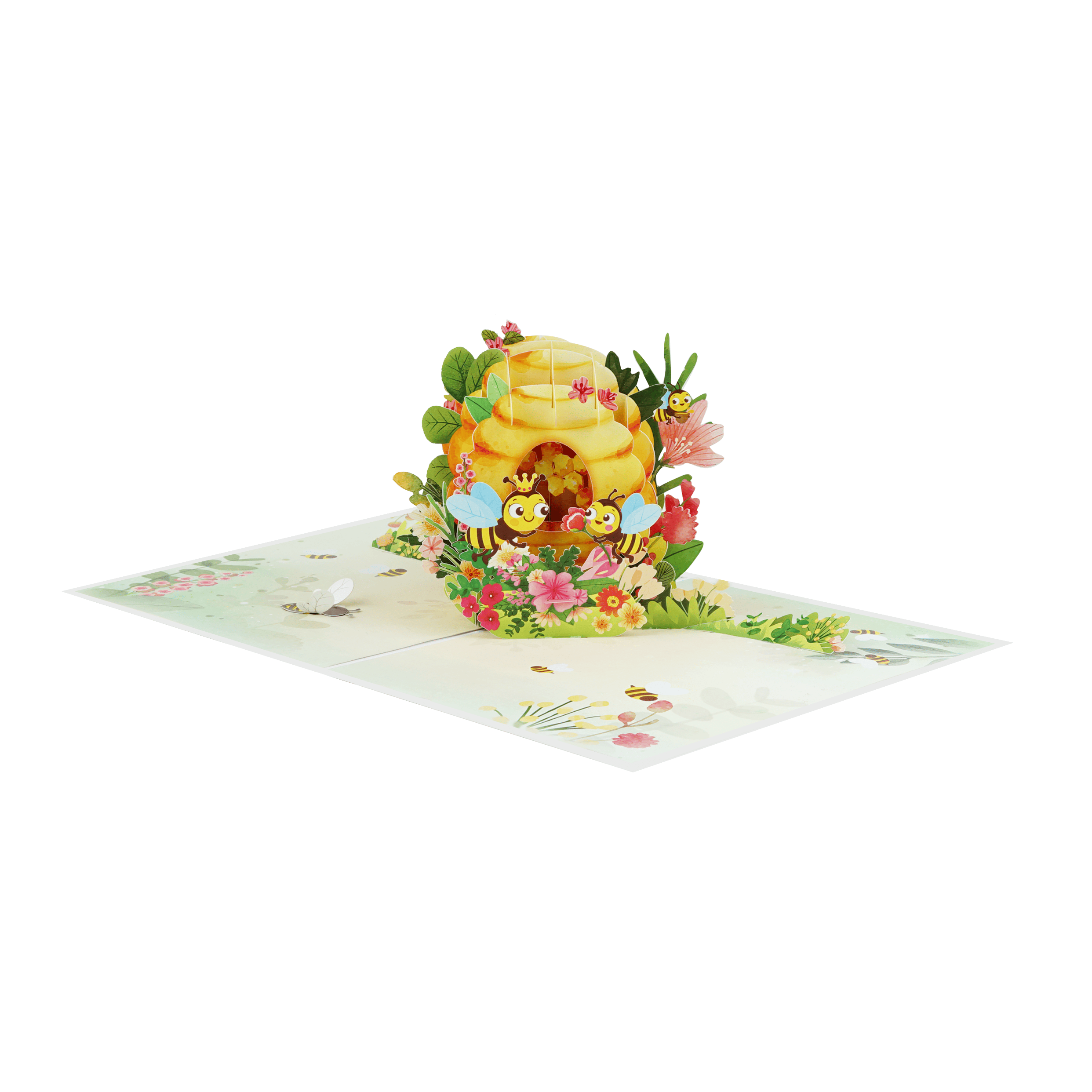 Bee House Pop-up Card is a beautifully handcrafted 3D greeting card inspired by the warmth, care, and sweetness of a mother’s love. The design showcases a charming beehive home nestled among colorful flowers, honey jars, and playful bees, forming a heartwarming and lively pop-up scene.