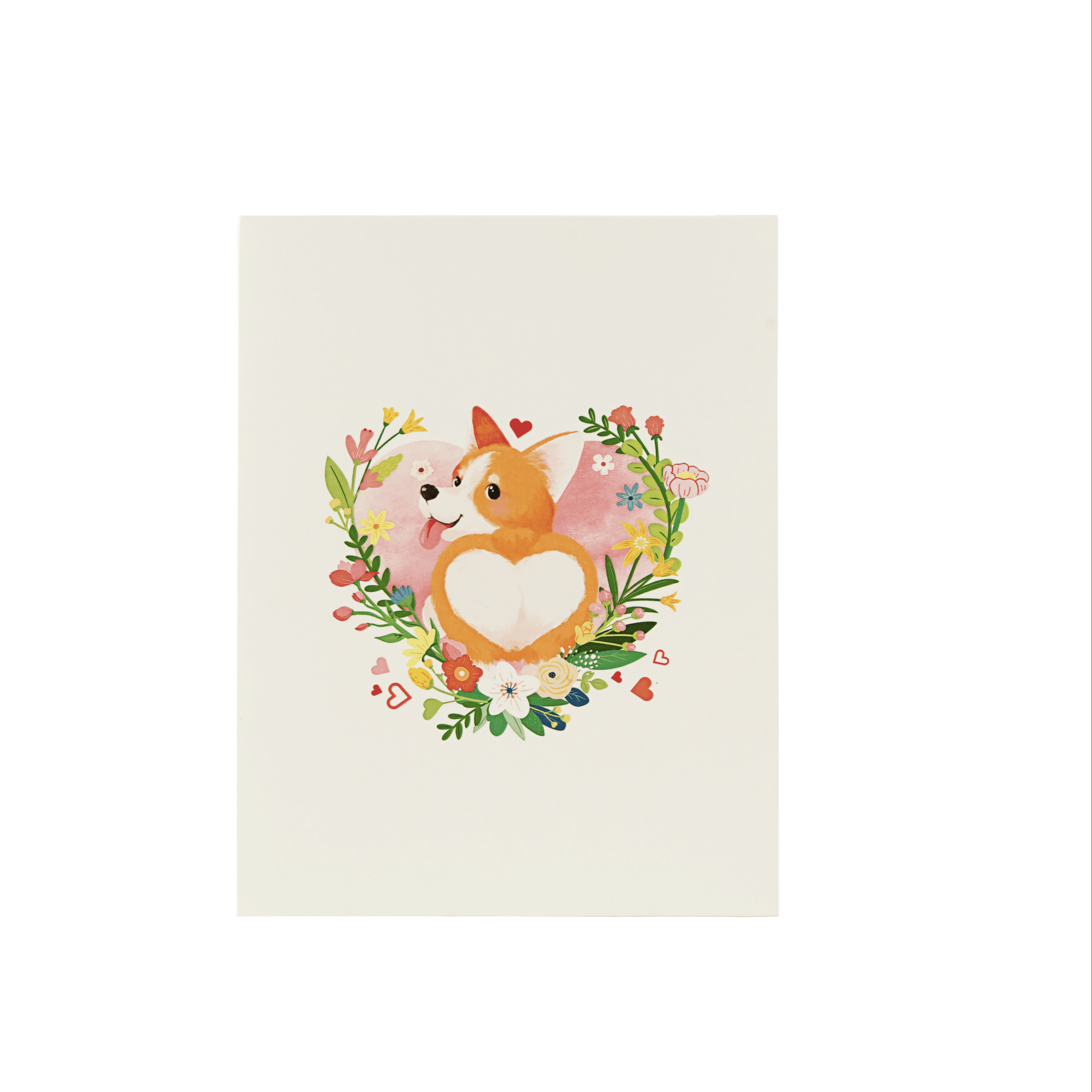 Celebrate love with our Corgi Love You Pop Up Card — a delightful 3D scene featuring an adorable corgi holding heart-shaped balloons surrounded by blooming flowers. Handcrafted in premium paper, this card is perfect for Valentine’s Day, anniversaries, or simply telling someone how much they mean to you.