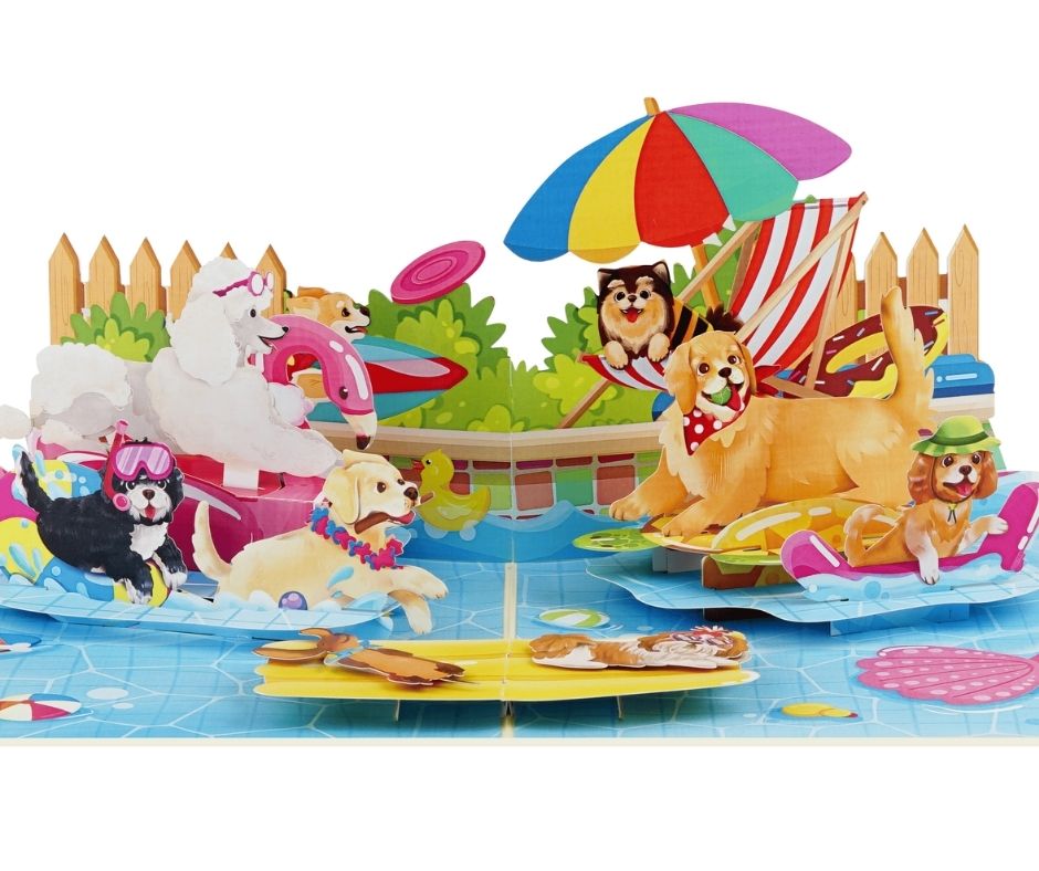 This Dog Pool Party Pop-Up Card is pure joy in paper form — bright, playful, and full of personality.