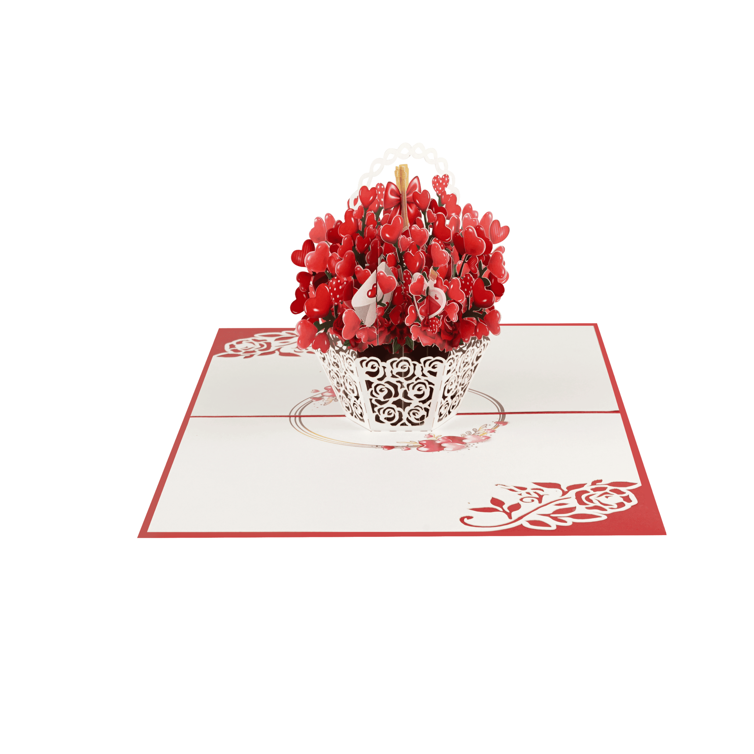 Red Heart Bloom Basket Pop-up Card