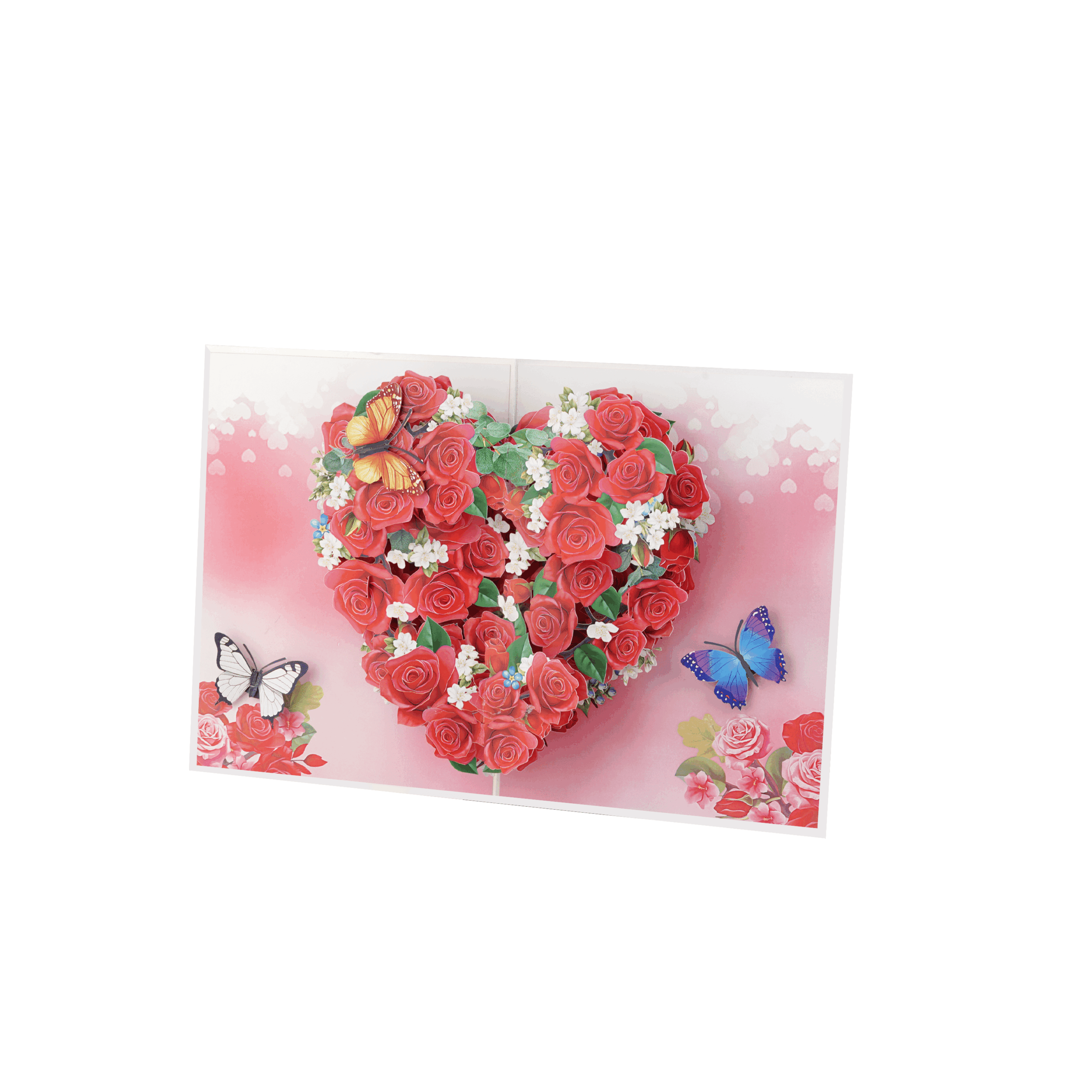 Celebrate the beauty of love with the Red Rose Heart Pop-up Card from Kiricard.